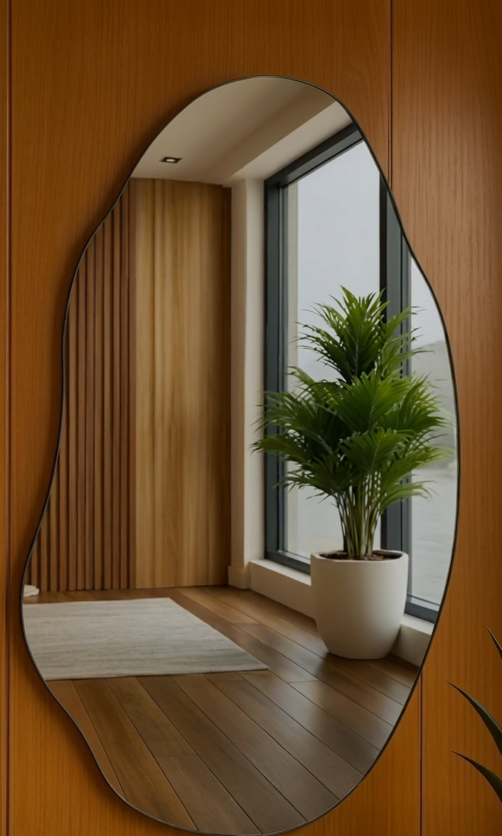 Hermoso espejo con reflejo nítido. Se ve muy elegante y de alta calidad.